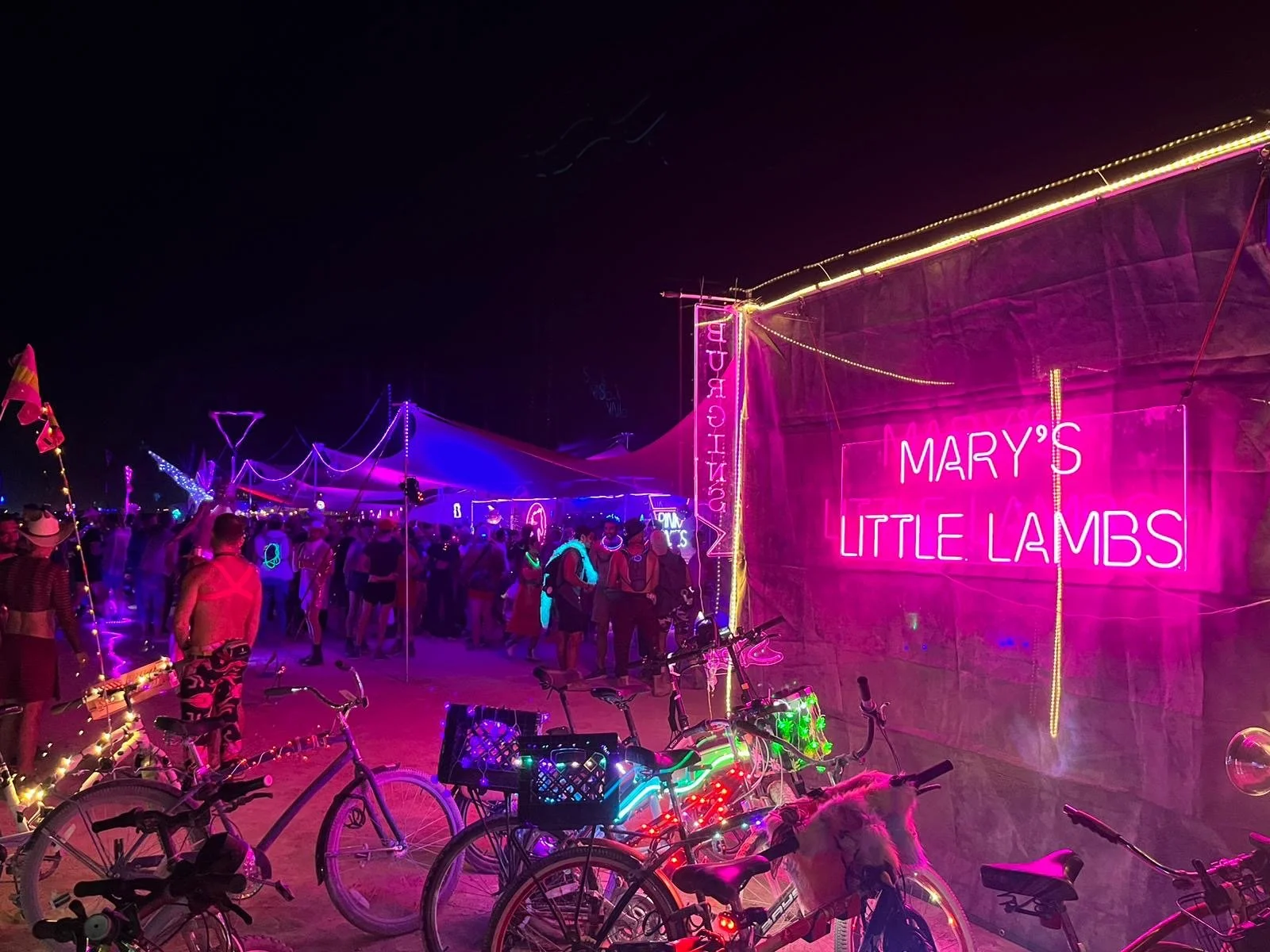 Mary’s Little Lambs is a vibrant, queer, and international Burning Man camp dedicated to building a playful, inclusive, and caring community on the playa. We’re a sanctuary of self-expression and support, where diversity is celebrated and every lamb has a place in the flock.